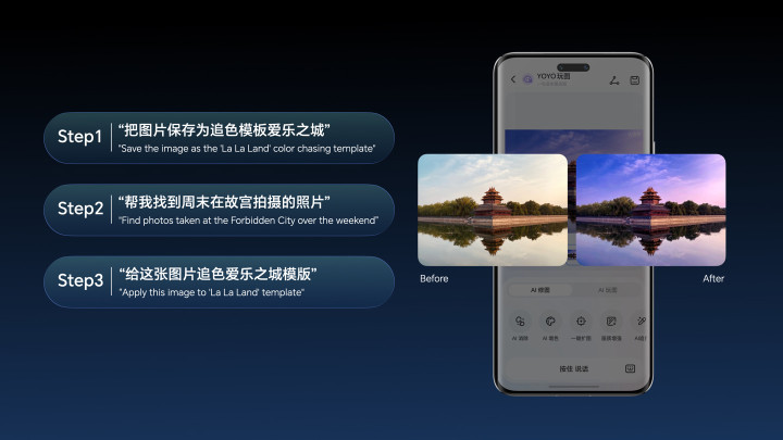 值得一提的是,“一语AI追色”是行业首个智能体驱动下的图像AI追色技术应用,用户只需一句话即可完成“检索目标图片、提取关键色、精准应用于目标图片”的全流程操作,对于用户来说,不但极大地降低了专业图像处理的操作门槛,更让手机影像突破了硬件的局限,喜欢的影像风格随手可得。未来,端侧智能体将从特定任务走向通用化执行,荣耀将支持200+垂域场景,覆盖领券购物,生活缴费,旅游出行等;以及3000+以上的通用场景,覆盖Top100的应用。